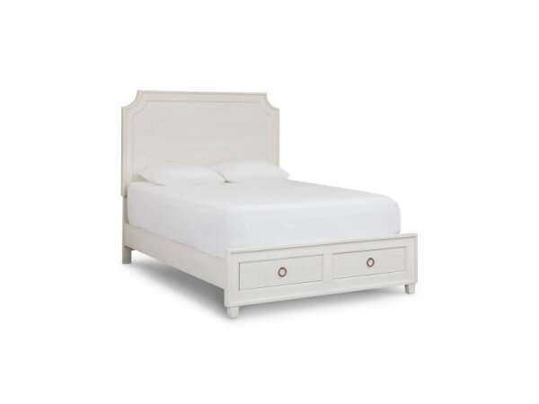 Wood panel bed with clean, modern lines in the Ventura collection's neo-traditional style. Available in Chalk Slate or Shell White finishes; foundation required.