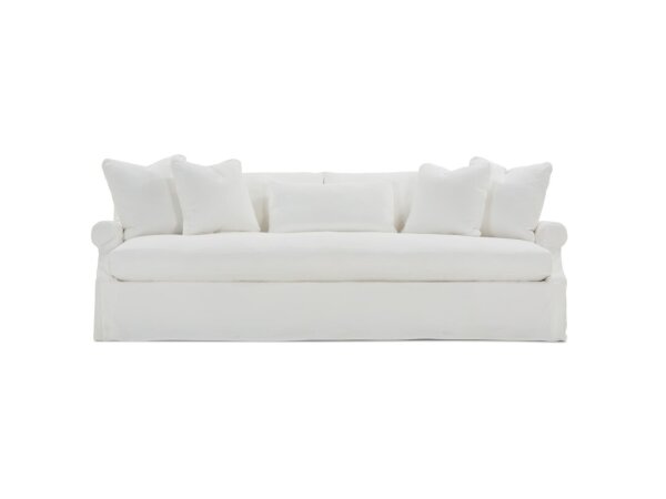 This Farmhouse leaning bookcase is crafted from rubberwood solids and oak veneers, featuring a two-tone whitestone finish with weathered oak shelves. It provides ample storage and display space with five graduated shelves, offering a rustic aesthetic.