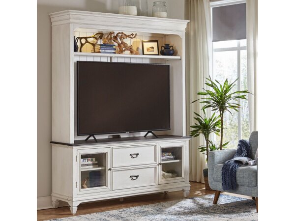 This 10-drawer chesser blends traditional and modern styles with a Whitestone finish, heavy distressing, and antique pewter hardware. Crafted from rubberwood solids, it features felt-lined top drawers, cedar-lined bottom drawers, and full-extension wood-f