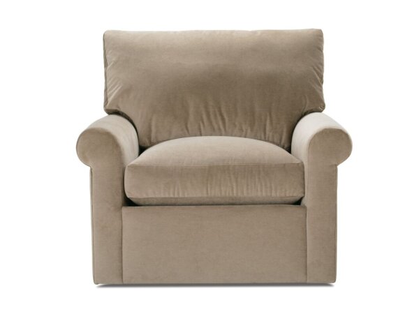 Modular pit sectional with top‑stitched, weltless box seats and loose, removable back cushions for easy cleaning. Walnut‑tone legs and configurable pieces scale to any living room.