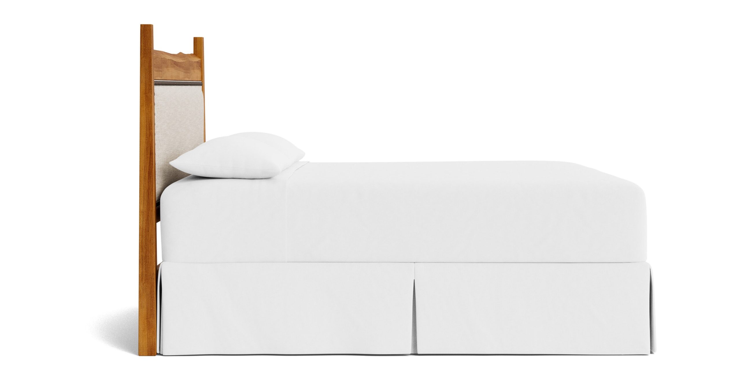 Our Bassett artisans thoughtfully transform homegrown maple hardwood into the Heritage Live Edge Upholstered Bed. The live edge design of our Heritage Bed creates a headboard as unique as any Appalachian maple tree and deserving of its instant heirloom status. An upholstered panel softly augments the undulating live edge of its headboard and can be customized to your design plan with your choice of fabric and details. You can also choose from one of our select finish colors that we’ll apply in a multi-step process to enhance the natural wood grain. Select low or high posts on a Queen, King or California King frame, or opt for a headboard only. Consider adding nailhead trim around the upholstered panel. With BenchMade custom beds like the Heritage, we can turn your dreams into reality.