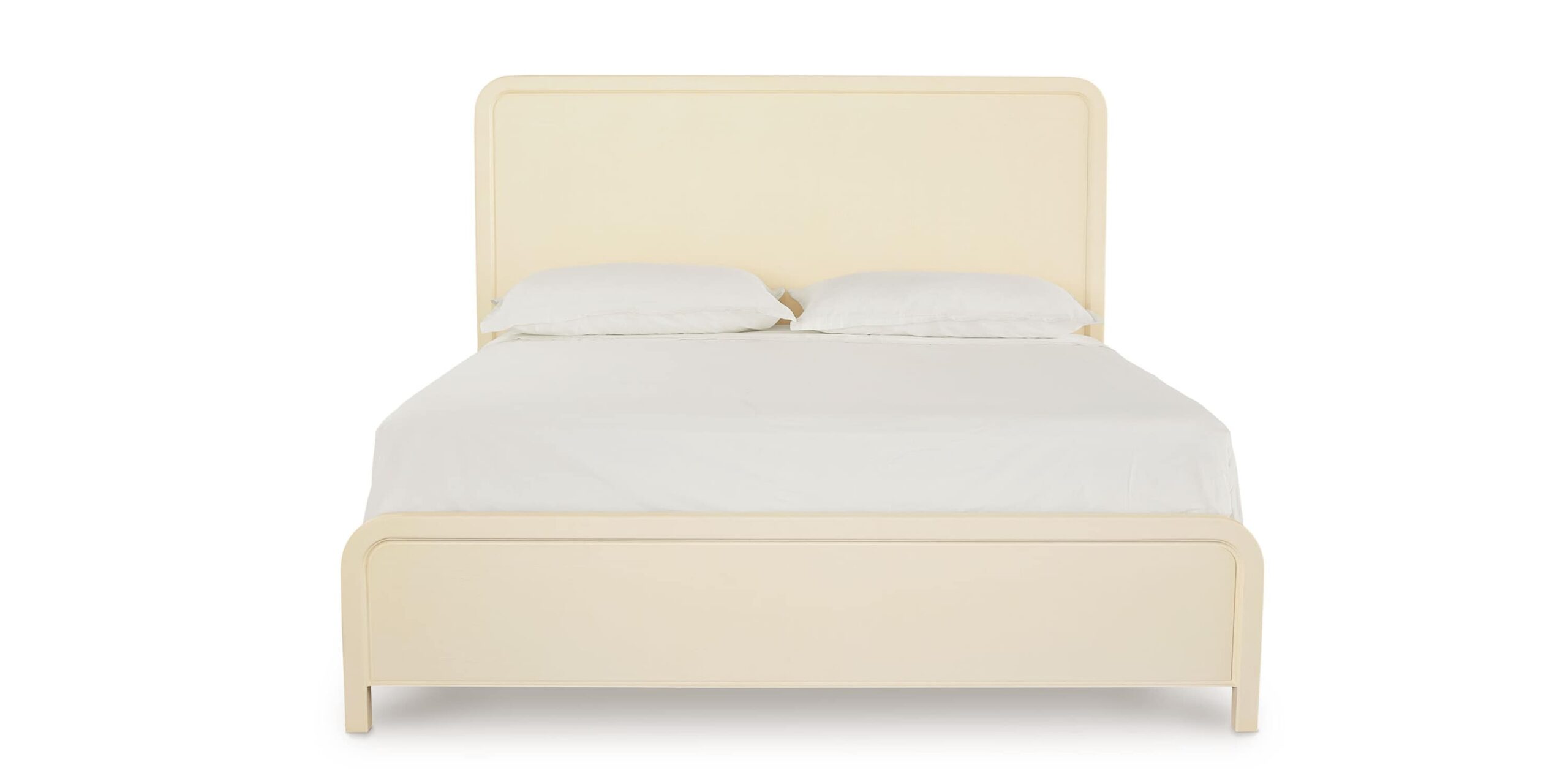 Soft rounded corners on the paneled white oak headboard and footboard enhance the sleekly architectural appeal of our Newbury Panel Bed. A tracing groove around the outer frame adds dimension to the textured oak, while the clean line of the bed rails anchors the overall look in a straightforward statement of modern style. Available in either of the two Newbury signature finishes, complete bed or headboard-only options can be ordered in Queen, King, and California King sizes.