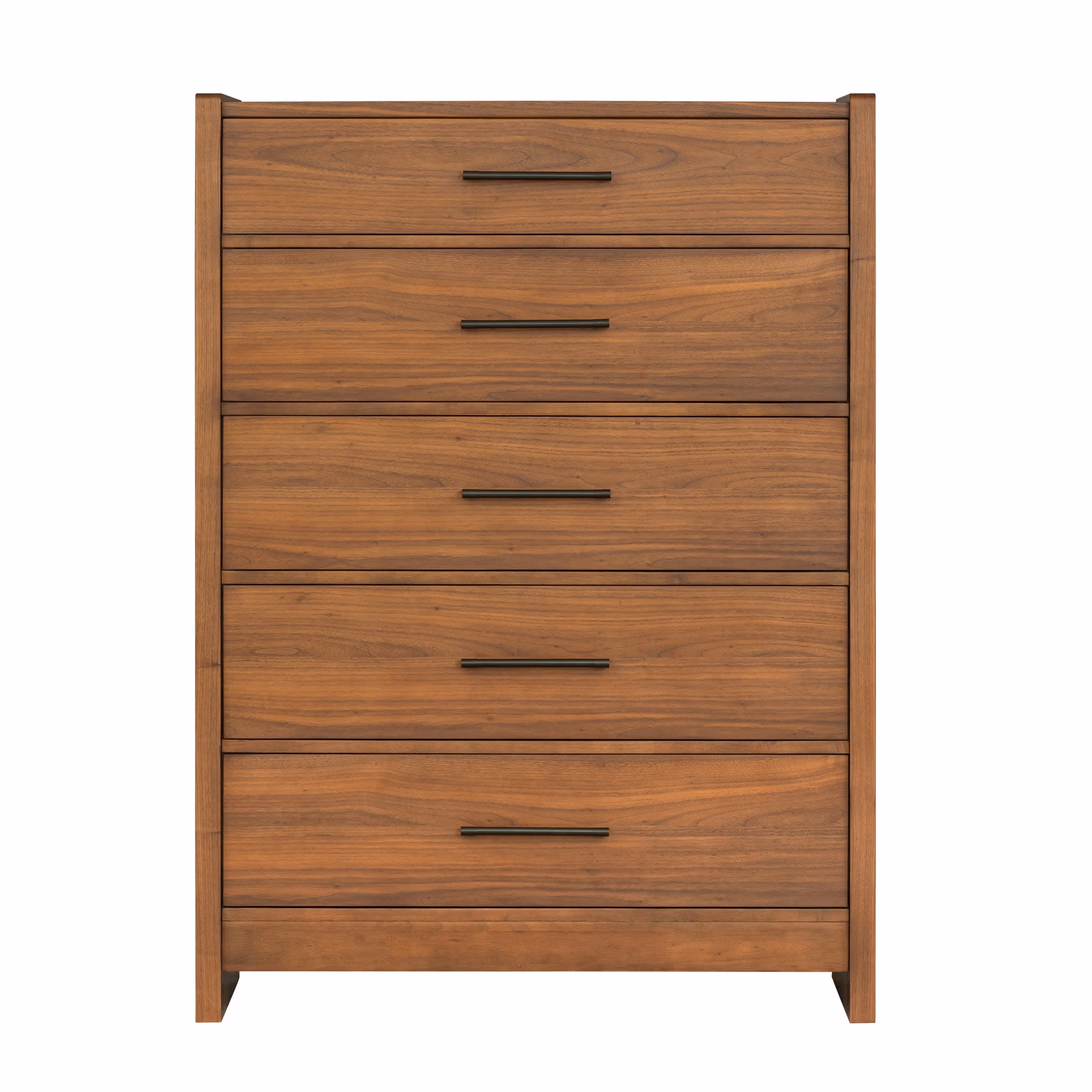 Rooted in architectural simplicity and thoughtful craftsmanship, the Lincoln chest brings structure and sophistication to the bedside. Its Warm Walnut finish and understated gunmetal accents create a subtle detail that stands out. Designed to complement the collection while standing confidently on its own, this chest adds a lasting style to the space.