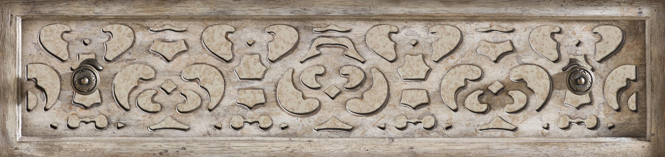 Create a bedroom retreat of unsurpassed romance with the Chatelet Fretwork Nightstand with its exquisite vintage white finish with intricate fretwork over antique mirror and generously scaled, burnished bronze drawer pulls inspired by antiques. All three drawers are wallpaper lined. Convenient electrical outlet included.