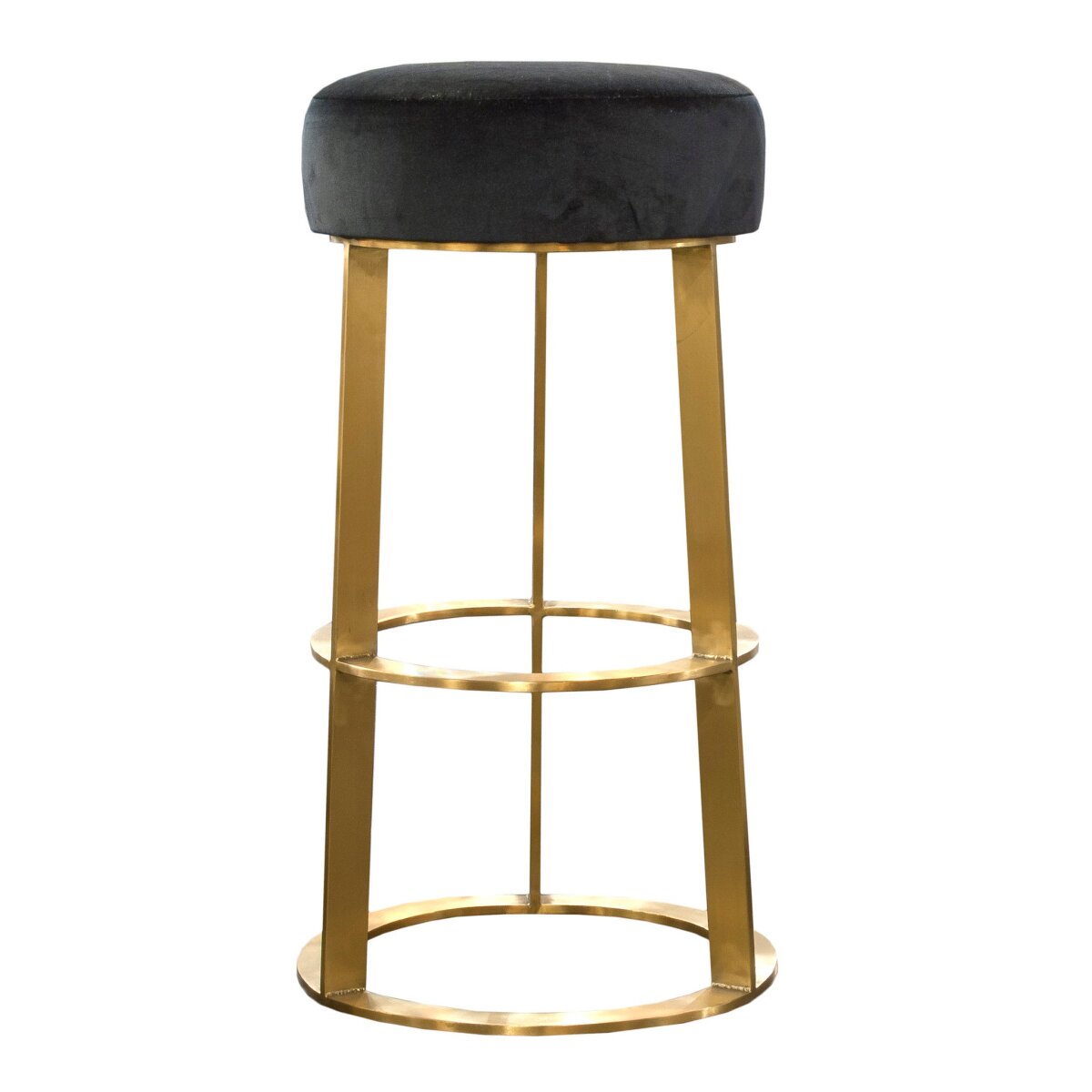 Ainsley Bar Stool | Black Velvet Fabric With Brushed Gold Metal Base