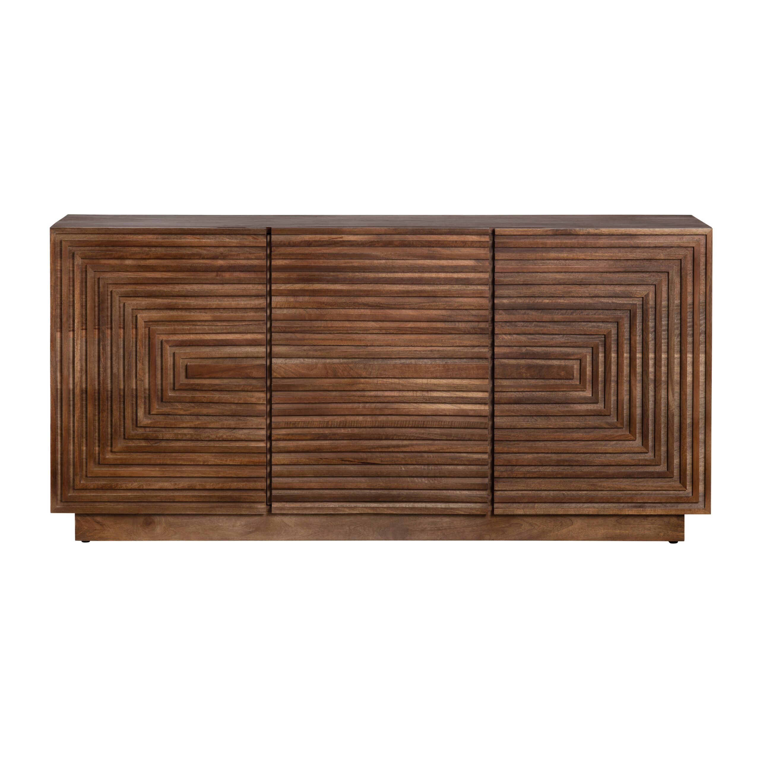 Crestview Collection Paxton 3-Door Sideboard is crafted from high-quality and sustainable mango wood, built with strength and durability in mind. Hand finished with a warm brown stain that beautifully highlights the grain of the wood. With a contemporary