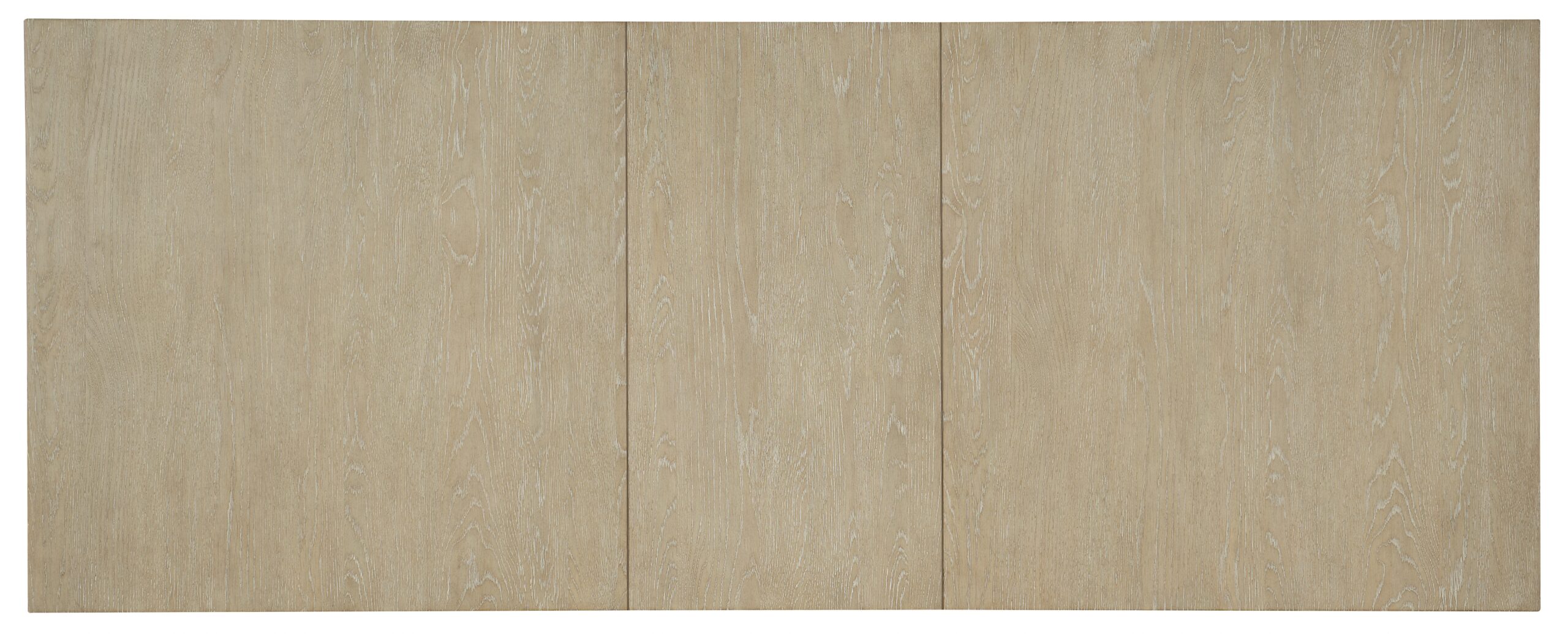 | One 22-inch leafLeaf extends table to 106-inches longTable accommodates 2 arm chairs and side chairs without leafTable accommodates 2 arm chairs and six side chairs with leaf in placeFinish: Table top: Terrain: a soft, taupe finish on oak veneers. Table b | Yes |