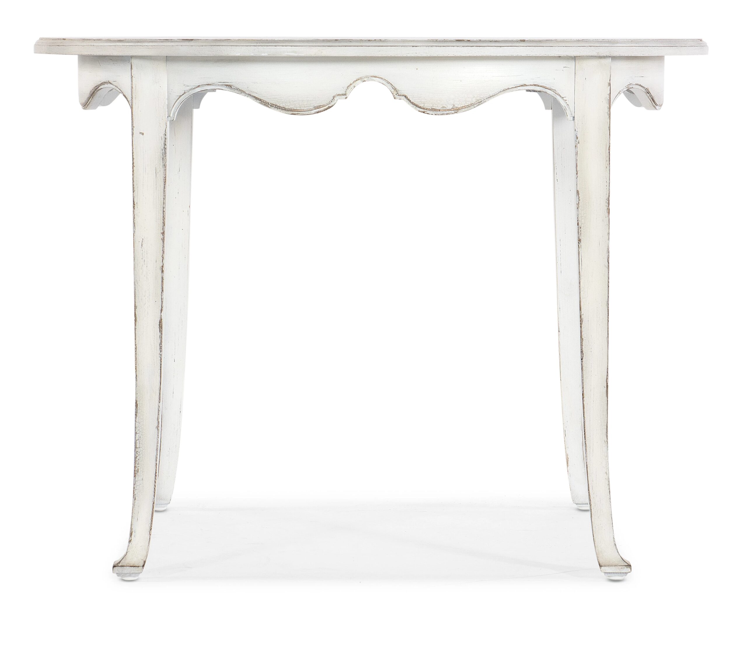 Capturing the vintage charm of the coastal South, the Charleston Breakfast Table is crafted of Maple Veneers and has a scalloped apron design. The finish is Magnolia White, a color originally created from the purest limestone, used to paint the pillars, posts and fences of classic southern homes. The round table has understated cabriole legs, a Solid-Wood Edge top and accommodates up to 4 coordinating chairs.
