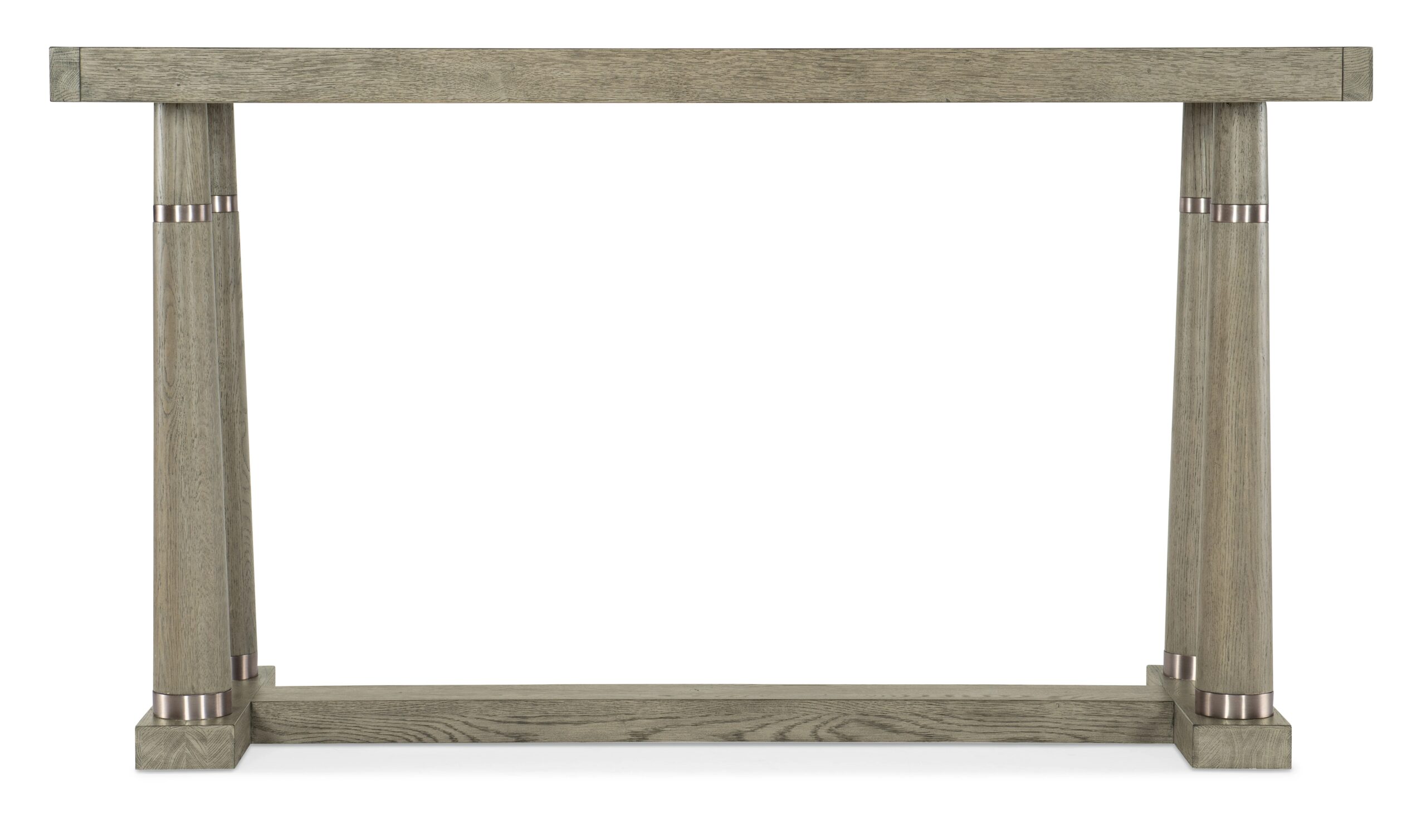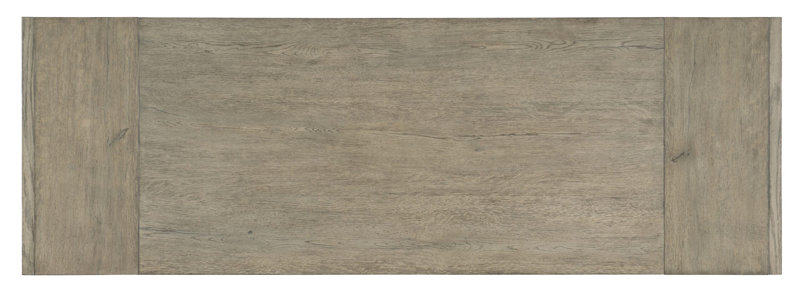 Capturing the essence of nature’s organic color palette and accented by antique pewter metal bands on the legs, the versatile Norwood Friendship Table can be used as a tall desk, counter-height dining table, gathering table or project table. It is height adjustable to 30-inch dining height or 36-inch counter height and has two 12-inch leaves. Crafted of Oak Veneers, it is finished in a soft smoked gray Mink color.