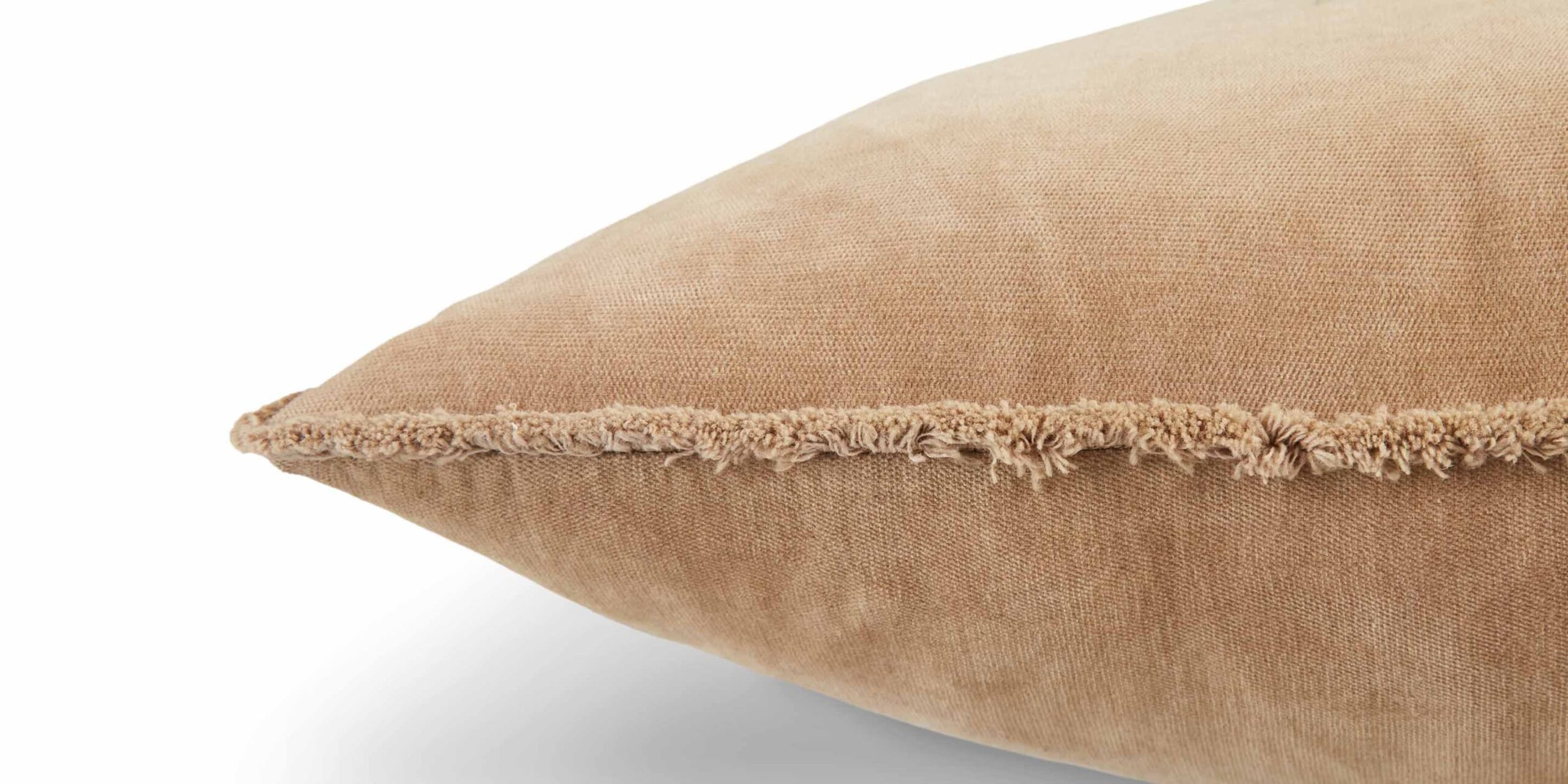With a versatile, solid color, this cotton velvet throw pillow adds design sophistication to any bed or sofa with ease. The subtle earthy hue and fringe-trimmed edges offer style elevation and cozy comfort.
