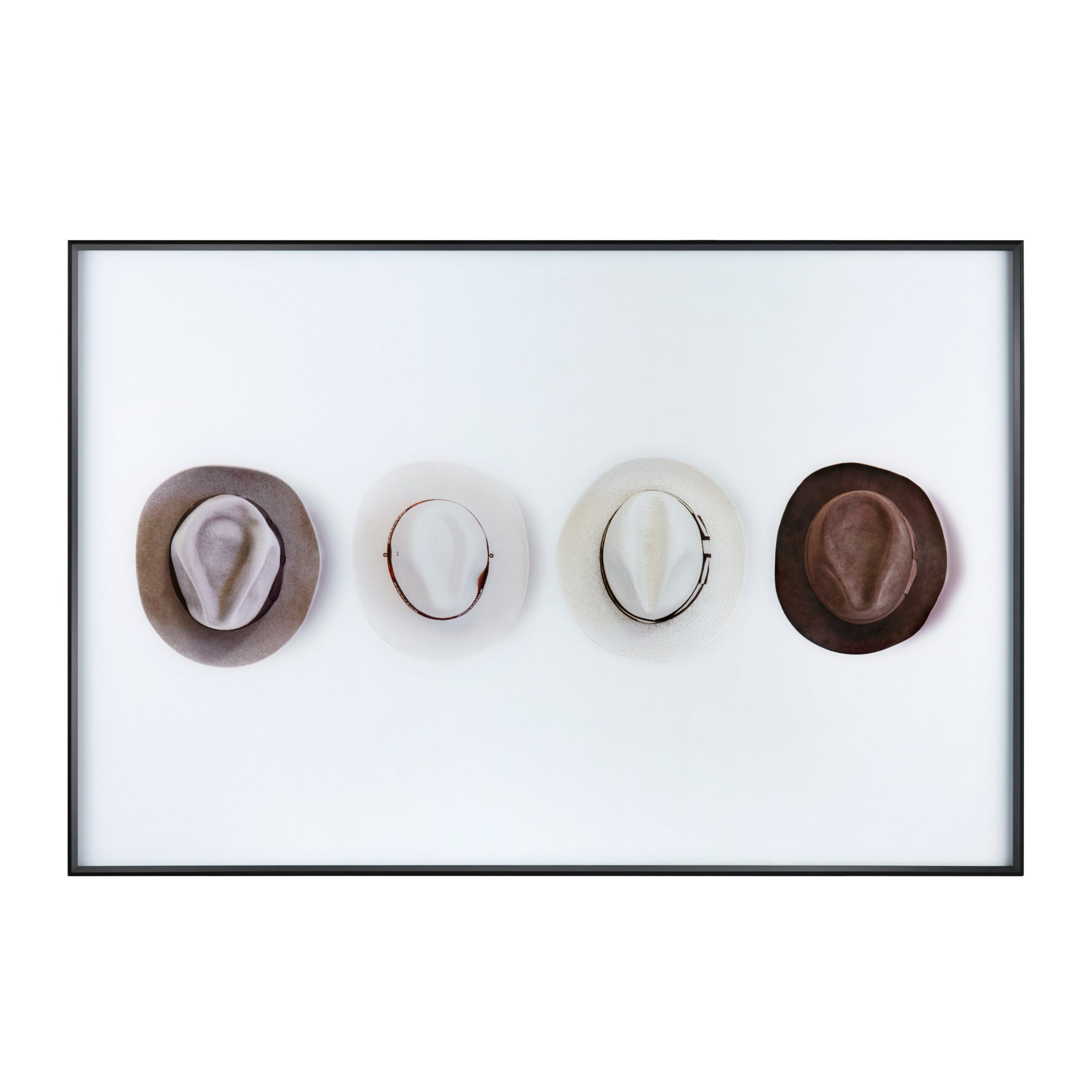 Introducing our striking “Billings” Print on Tempered Glass, a captivating piece of art that pays homage to the timeless style and rugged spirit of the Wild West. This print showcases a group of four Western hats, elegantly arranged in a line at the cente