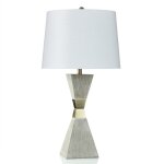 Morris Grey Table Lamp Geometric Base With Bronze Accents