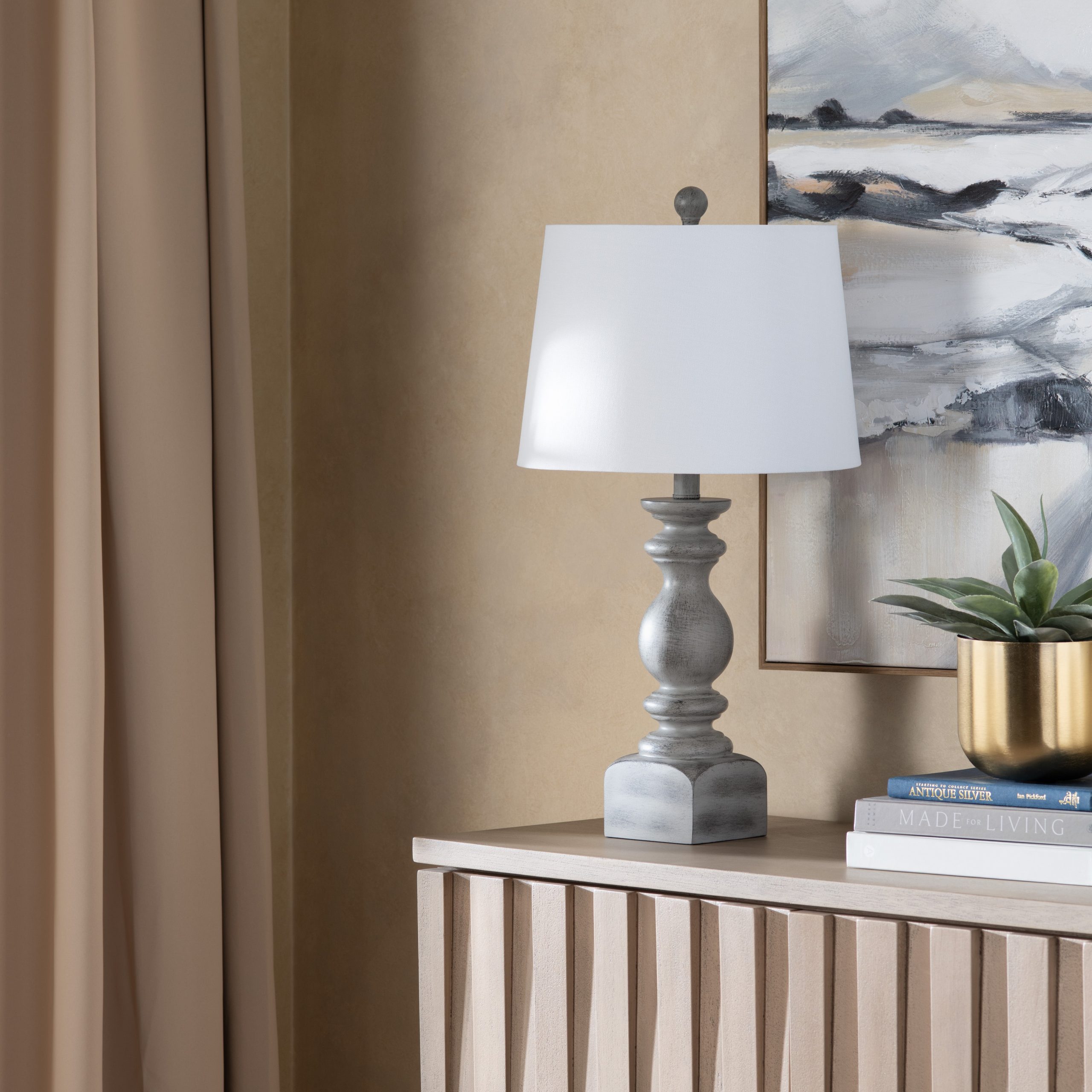 Introduce a sophisticated touch to your decor with this Grey with a light undertone Poly Resin Table Lamp. Standing 25 inches tall, this lamp features a beautifully sculpted poly resin base in an elegant grey finish, blending seamlessly with both modern a