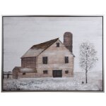 Life On The Farm Hand Painted Framed Canvas In Cream Browns And Grey
