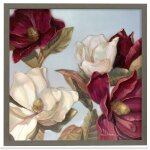 Magnolia Artist Print Faux Wood Frame Under Glass Attached Hanging Hardware