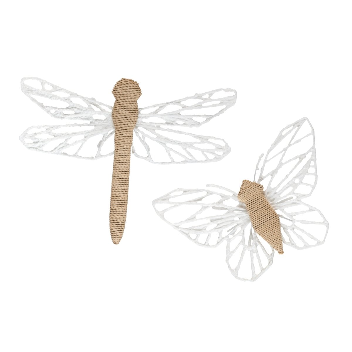 Introduce a sense of whimsy and wonder to your home with the “Wings Up” wall decor set by Crestview Collection. This enchanting duo features a butterfly and dragonfly, each brought to life through a unique blend of materials, including delicately wrapped