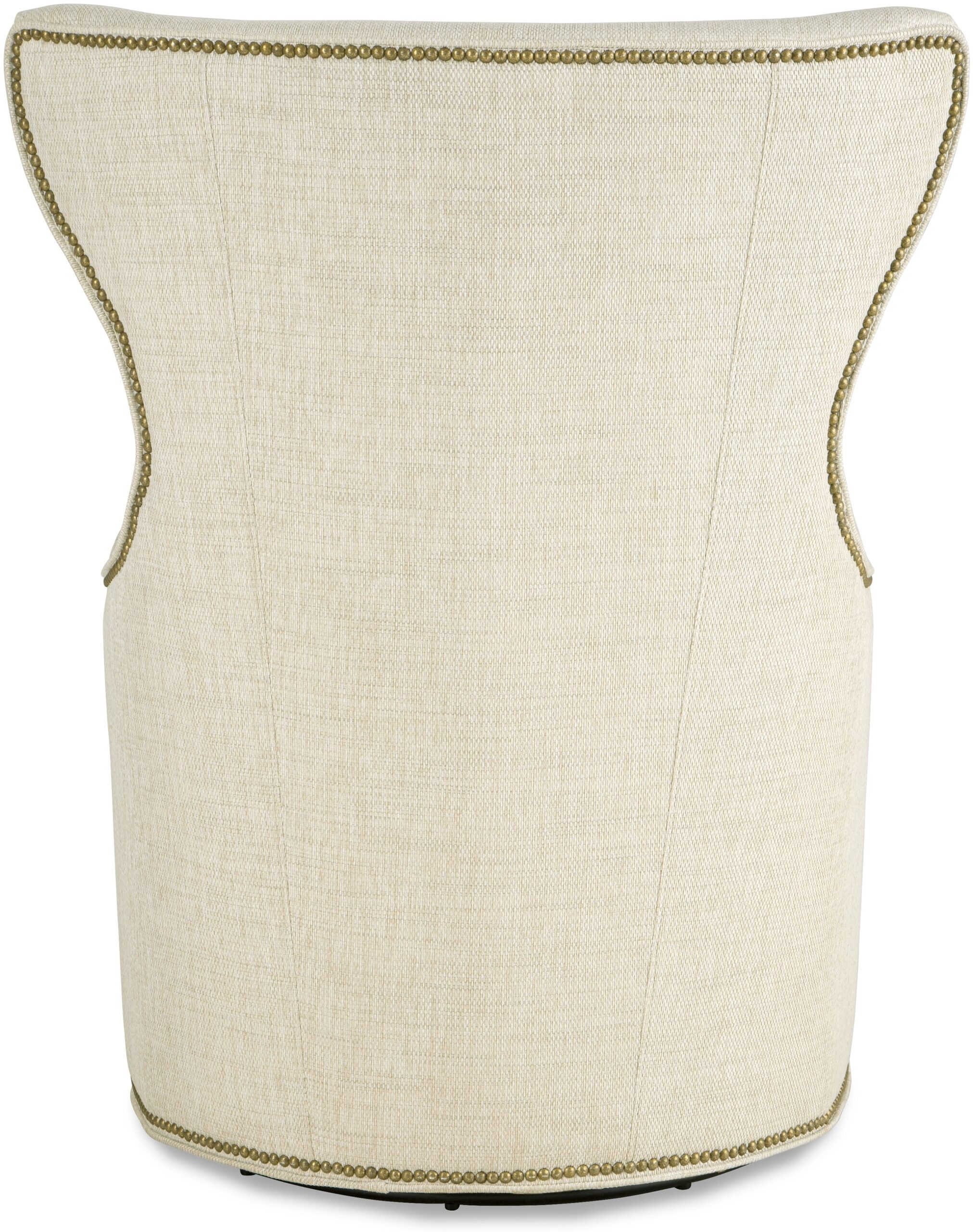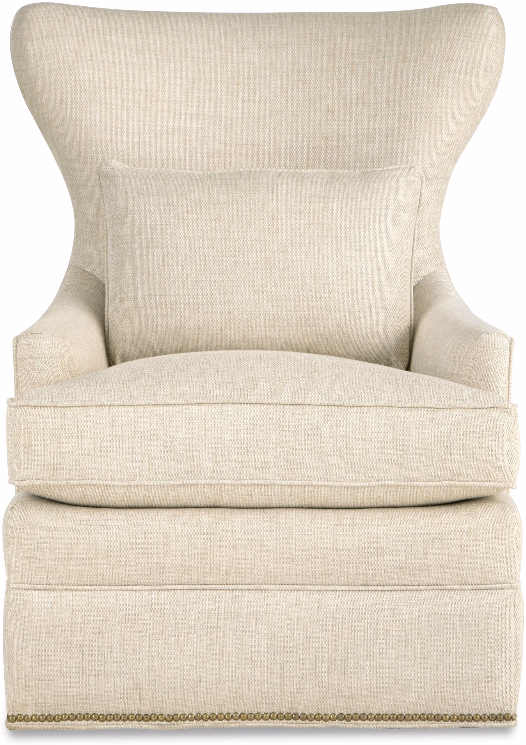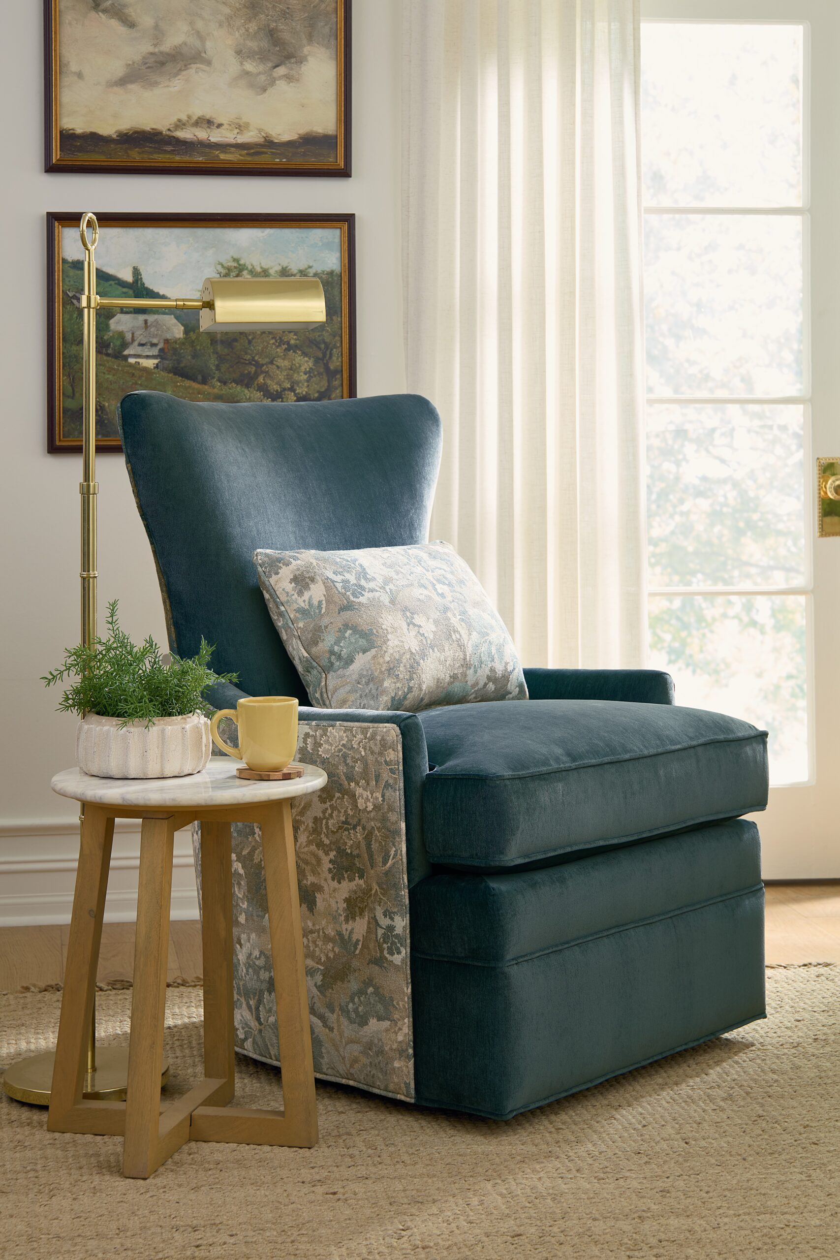 Bring home comfort as well as style with this beautifully executed swivel chair. It features a gracefully curved high back, nail head trim accents, and plush Blend Down cushioning for a soft supportive seat. A single kidney pillow allows for individualized comfort.