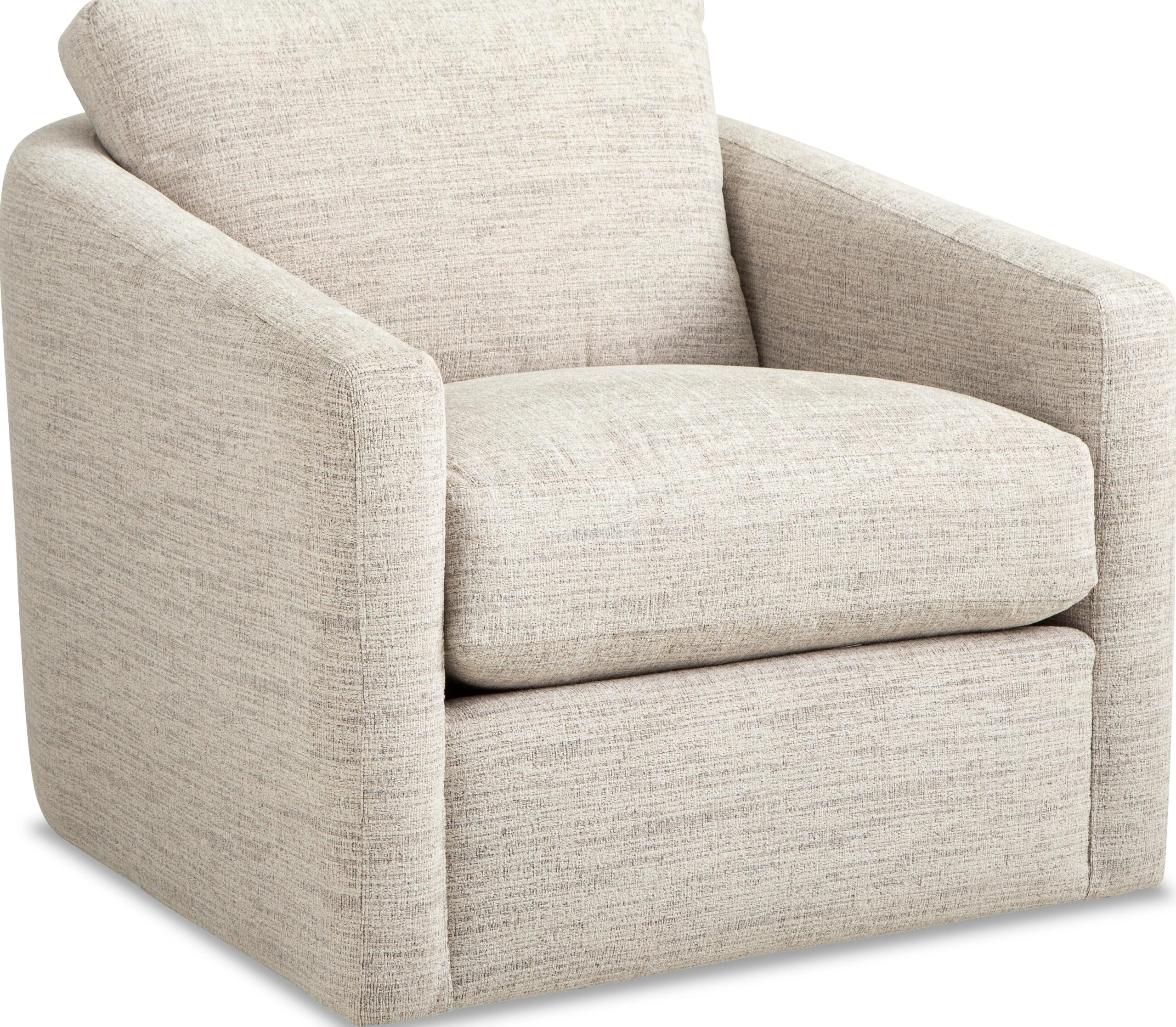 Make a statement with this chic and curvy chair from our CM Modern collection. It features a high sloping track arm that wraps into a beautiful curve around the back, catching your eye from every angle. French seamed all over to give a clean and modern aesthetic, this piece has a loose box border back pillow and plush Blend Down seat cushioning. Also available are the matching sofa, loveseat, ottoman, swivel chair and sectional.