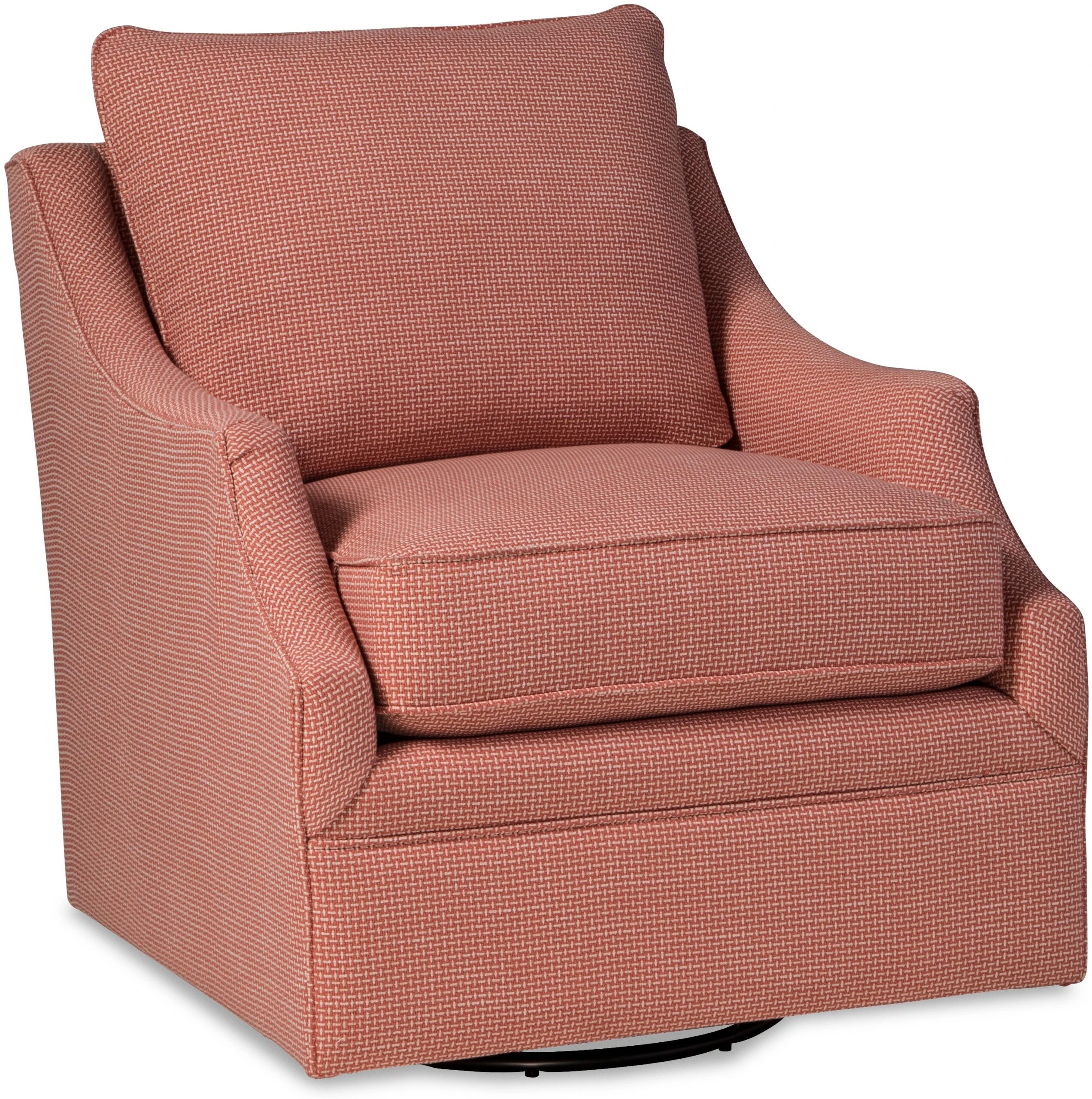 Perfectly designed and easy to love, this swivel glider is a comfortable classic piece you will love for years to come. It features a beautifully shaped scallop arm, a loose knife edge back pillow, and Paula’s exclusive Down Blend cushion for the ultimate in softness. Also available as a swivel chair (no glider) using style P087510BDSC.