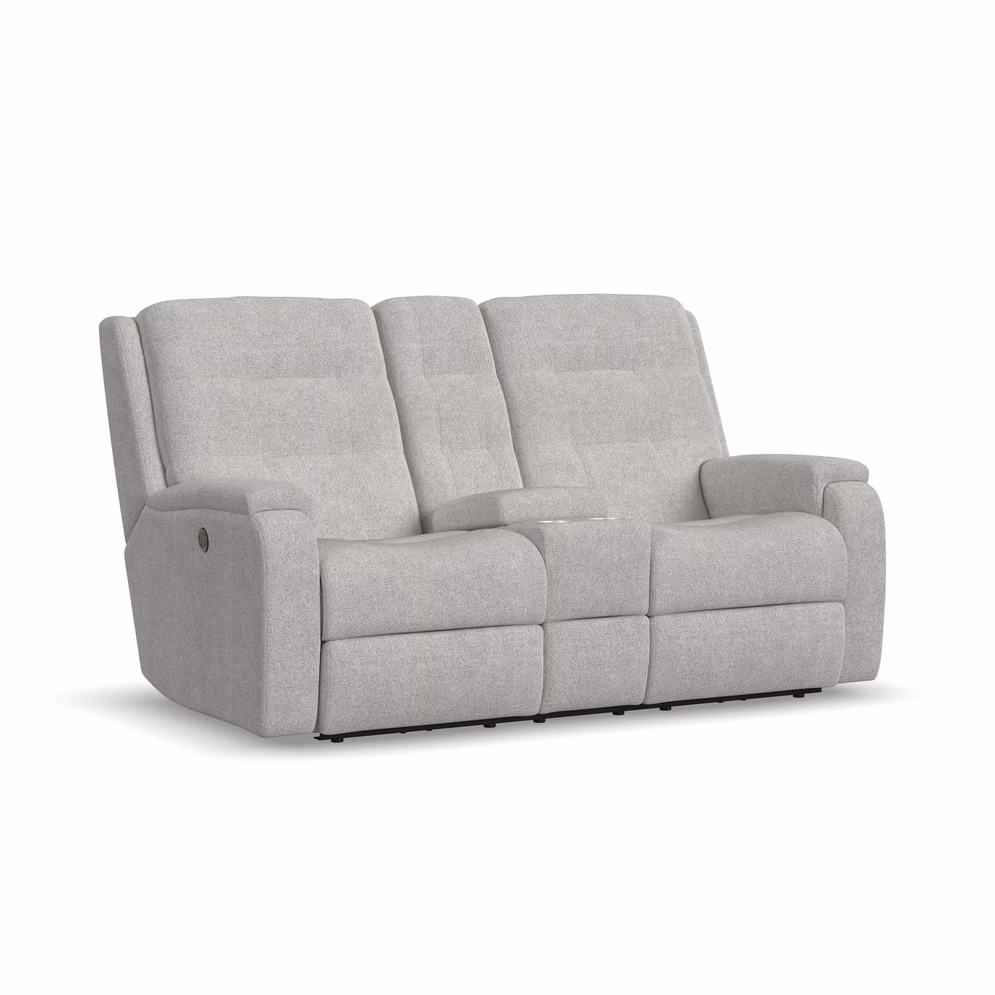 Stay comfy with everything you need for streaming, gaming or relaxing close at hand with the Arlo Power Reclining Loveseat with Console. Using the power controls in either of the arms, you and the person you’re sitting with can easily kick up your feet and recline. USB charging ports in the controls keep devices powered up and ready when you need them. A center storage console features cup holders and offers plenty of space to organize remotes, magazines and more. Comfort-enhancing design details include pull-tufted, triple-divide back cushions for a distinctive look and optimal back support. Contoured seats take pressure off your legs as you sit, while our patented DualFlex Spring System™ provides firmness and flexibility. Rounded pad-over track arms support your forearms—perfect for long hours of gaming or movie watching.
