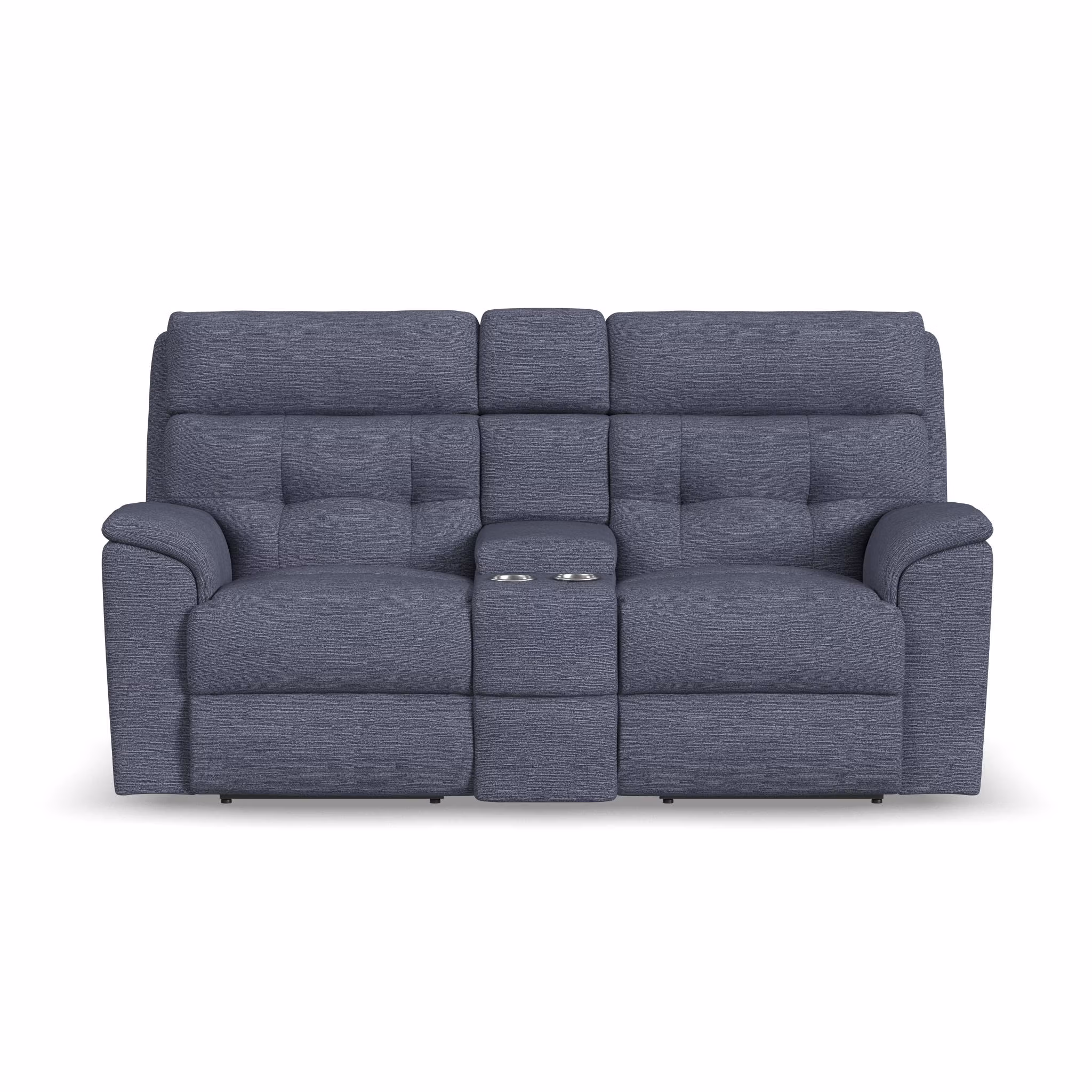 Enjoy ergonomic features you can finetune to suit your needs—even if you’re sitting alongside another person—with the Mason Power Reclining Loveseat with Console. Using the power control on either arm, you can independently adjust the headrest and recline to find the position most comfortable for you. Keep devices powered up with a USB charging port built into the power control. A convenient center console gives you plenty of space to keep beverages close by and store remotes, magazines, eyeglasses and more. Pad-over armrests provide a place to rest your forearms, while high-divide back cushions keep your head, neck and shoulders supported. Additional tufting takes pressure off your lower back. Quality and durability are guaranteed by our patented DualFlex Spring System™, which bolsters the frame and ensures firmness and flexibility as you sit.