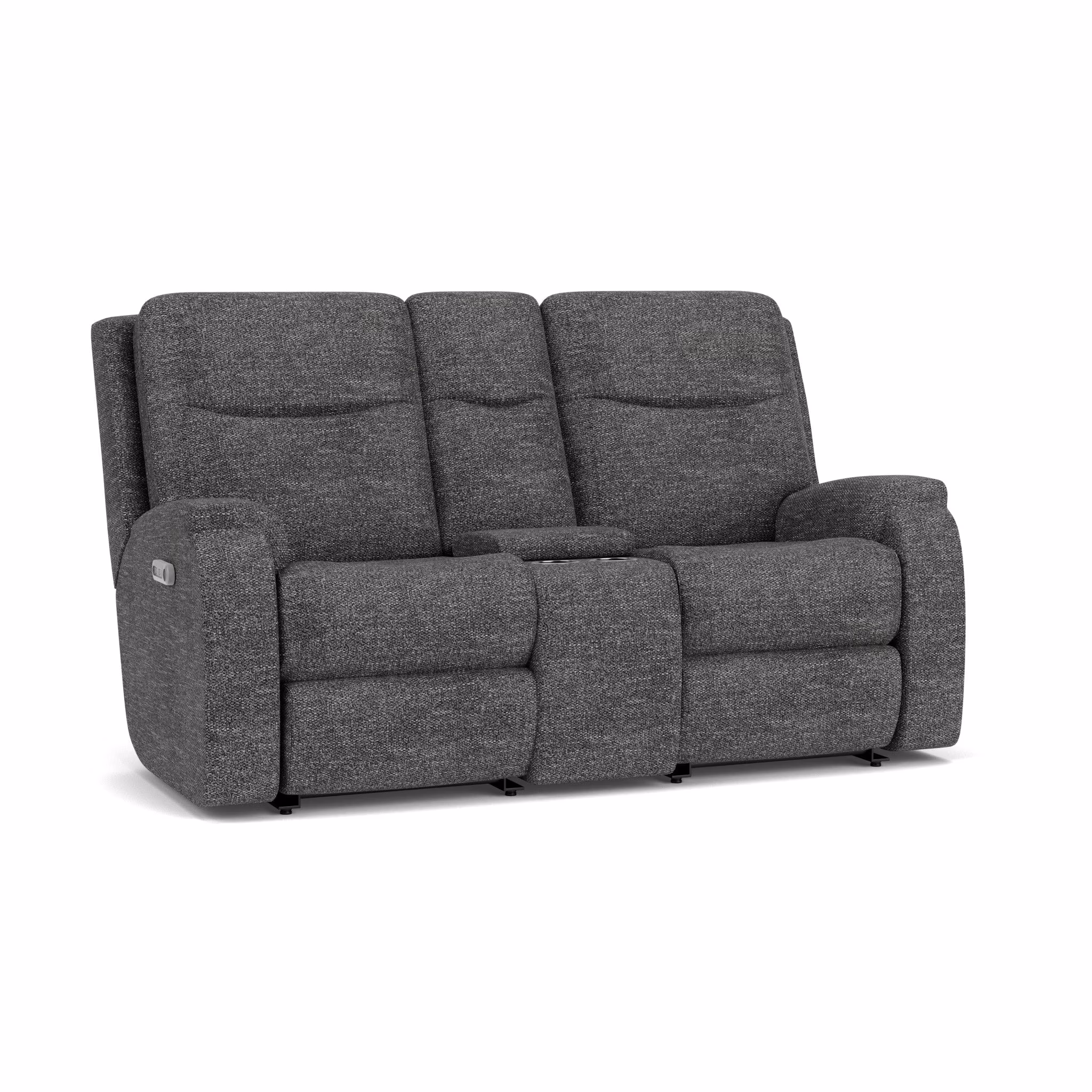 Combine beauty and effortless motion, with the Penn Power Reclining Loveseat with Console, Power Headrests & Lumbar. Using the power controls on either arm, each user can seamlessly adjust the recline setting independently. Power headrest and lumbar support lend customized comfort for your family’s individual needs. USB ports, with zero-draw technology, allow you to charge your devices with ease. The center console provides cup holders as well as additional storage for remotes and more. Crafted with our patented DualFlex Spring System™ Penn provides flexibility and firmness for years to come. Choose from hundreds of fabric options to create a unique look to suit any style. Whether you are settling in for a family movie night or just relaxing solo, feel fully supported by Penn.