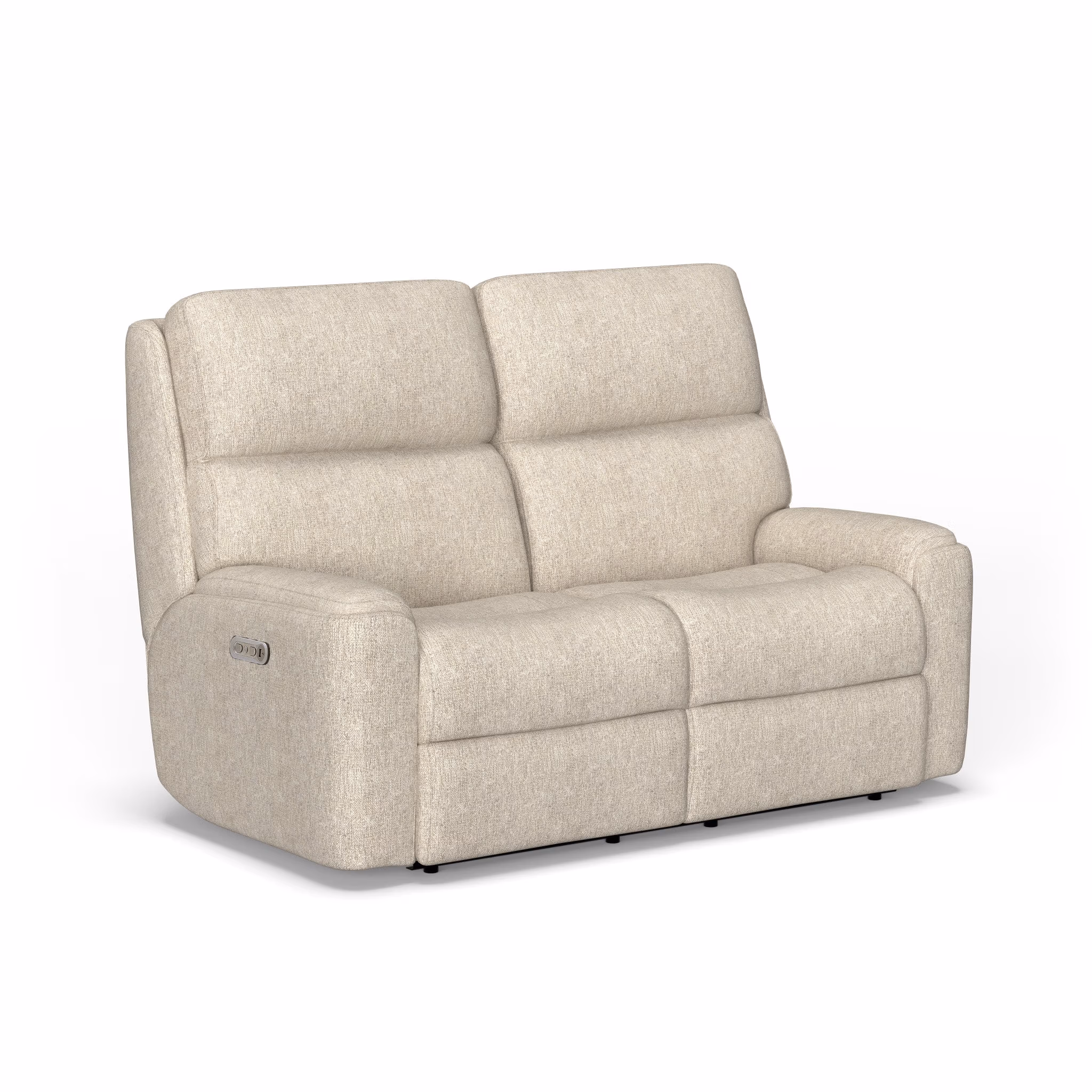 Sink into the comfort of an ergonomic loveseat built for two with the Rio Power Reclining Loveseat with Power Headrests. Thanks to a power control in either of the arms, both people sitting can independently adjust the recline and headrests to suit their mood. And with USB charging ports in the controls, you don’t need to worry about your devices dying. Divided back cushions keep your neck, back and lower lumbar supported, while inset padded armrests give you a place to rest your forearms and help you stay relaxed. With our patented Flexsteel DualFlex Spring System™, you can enjoy the loveseat’s pleasing mix of firmness and flexibility for years to come.