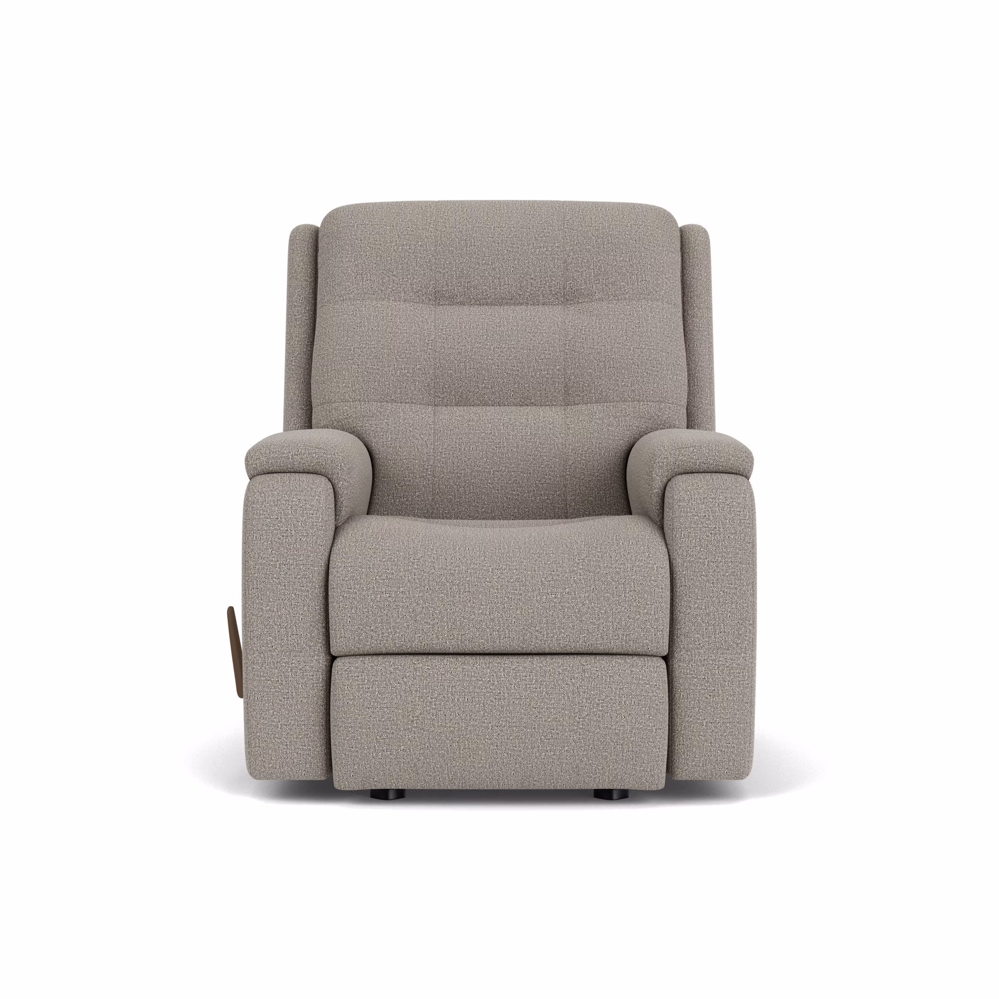 Enjoy the soothing motion of the Arlo Rocking Recliner. In the sitting position, this recliner features a comforting back and forth motion that’s great for lulling babies or relaxing solo. When you’re ready to lay back and relax, use the convenient handle in the arm to adjust the recline. Other features designed to enhance your well-being include pull-tufted, triple-divide back cushions that have a tailored look and support your head, neck and lower back. Rounded pad-over track arms reduce pressure on your forearms while offering a refined aesthetic. Reinforced by our patented DualFlex Spring System™ that combines firmness with flexibility, the contoured seat gives you a comfy place to kick back and unwind.