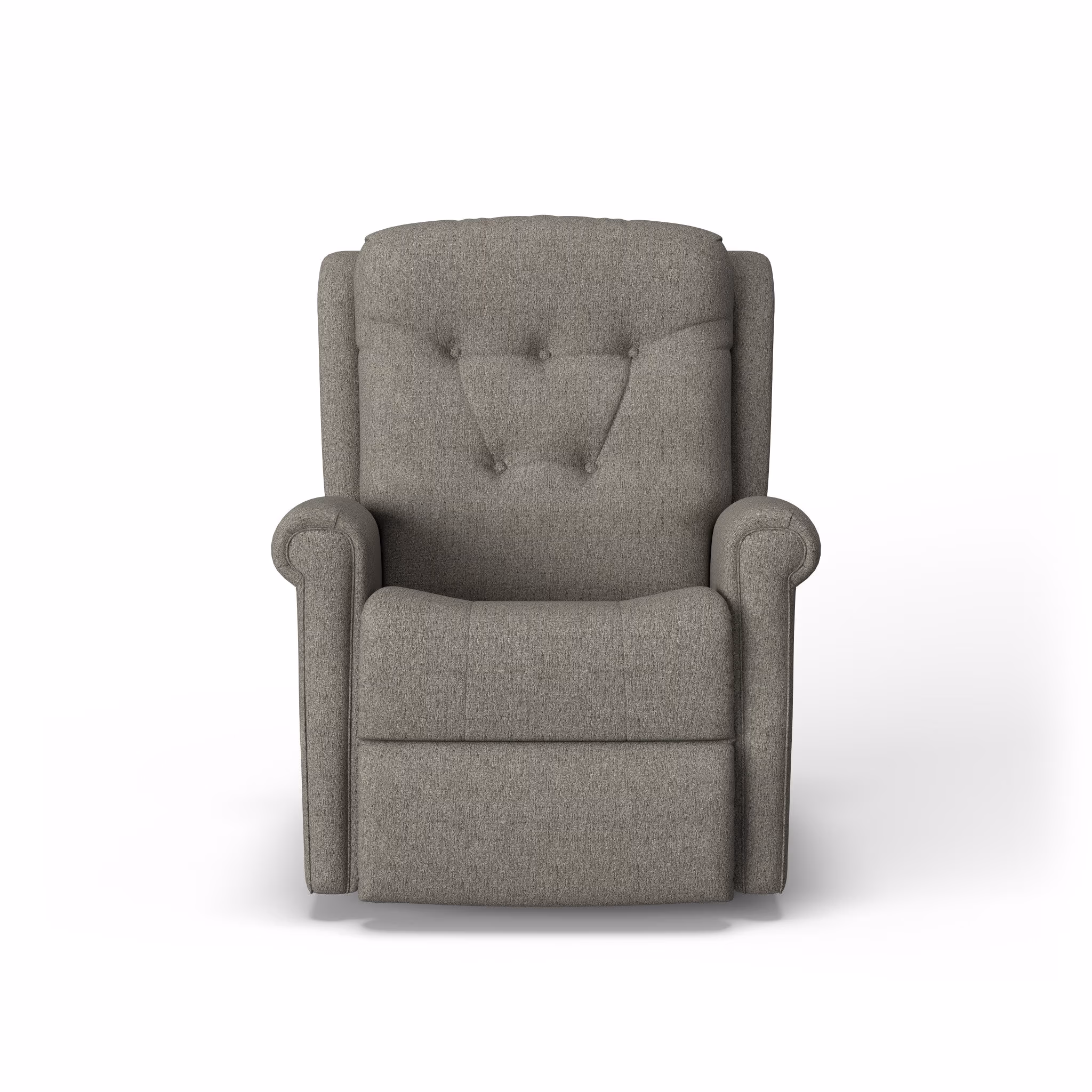 Minnie is a traditional recliner with fresh and casual features. Its set-back rounded arms are accented in the front with welt cording. The fully padded footrest and button-tufted back cushion add comfort and style to this timeless piece. A smooth reclining mechanism lets you change angles effortlessly from an upright to a fully reclined position.