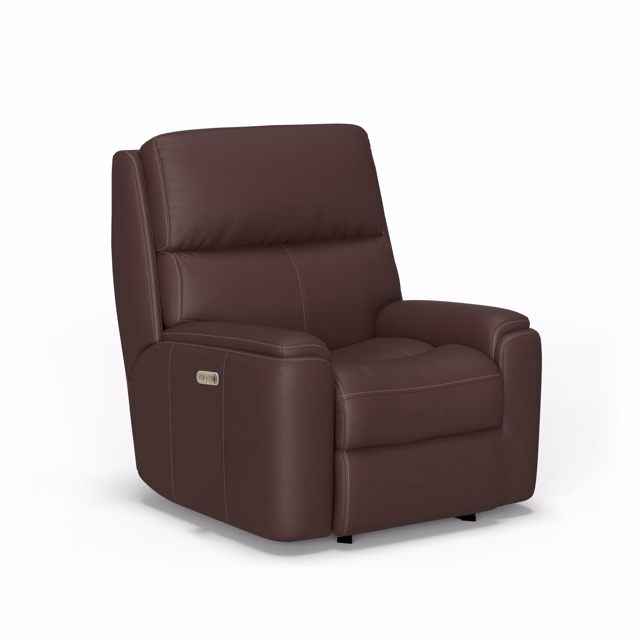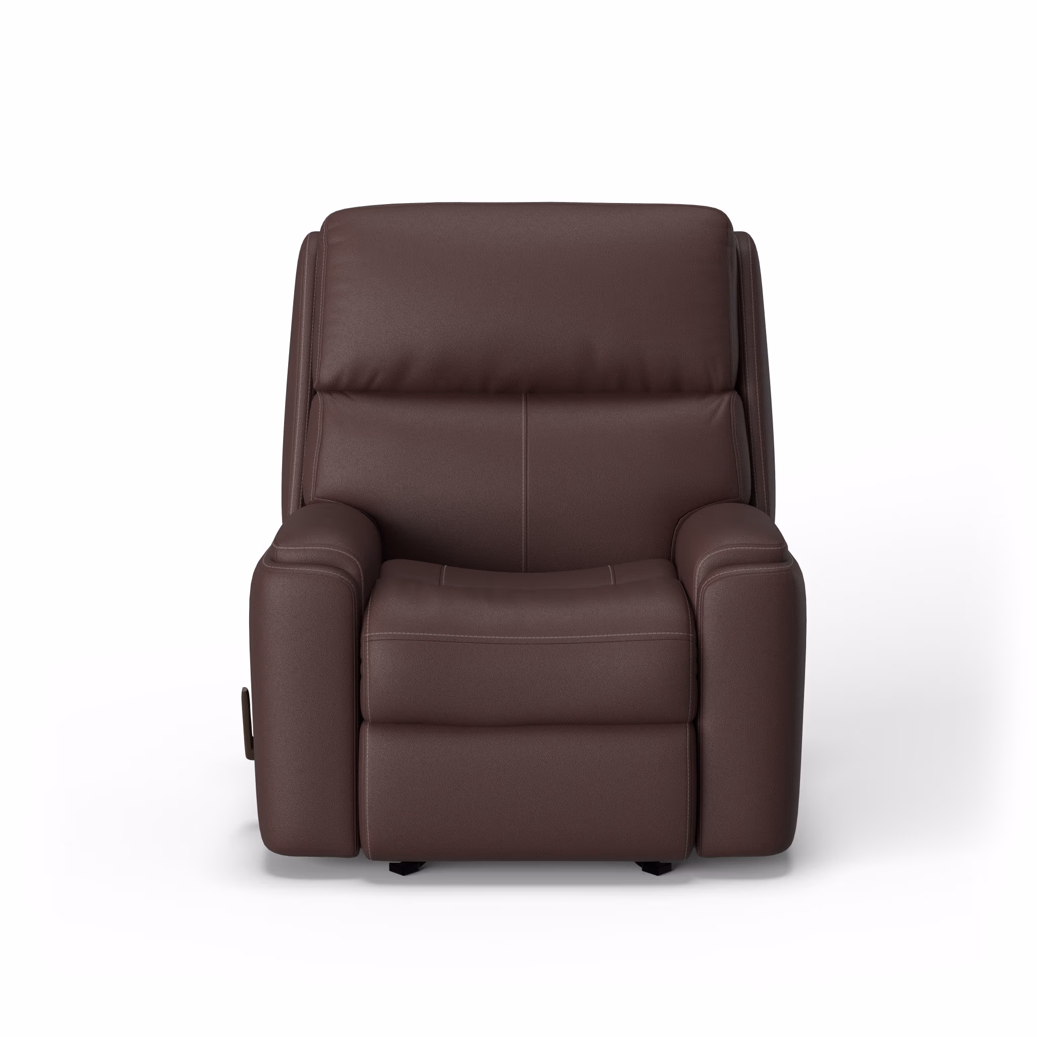 Make it easy to unwind as you watch a movie with the Rio Rocking Recliner with Power Headrests. While you’re in a seated position, enjoy the recliner’s soothing back and forth motion. When you’re ready to lay back, use the power control in the arm to independently adjust the recline and headrest and dial in the right level of comfort to suit your mood. You won’t need to get up to charge your phone, thanks to a convenient USB charging port built in the power control. Plush divided back cushions support your neck, back and lower lumbar, while inset padded arms take pressure off your forearms. Bolstered by our patented Flexsteel DualFlex Spring System™ that combines firmness with flexibility, this recliner will keep you comfortable for years to come. All these ergonomic features are enhanced by the luxurious look of our premium leather—available in over 50 easy-to-maintain options.