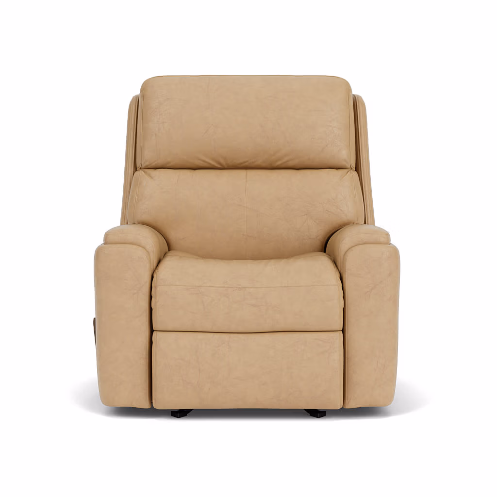 Enjoy the soothing motion of the Rio Rocking Recliner, available in our luxurious leather upholstery. In the seated position, this recliner features a comforting back and forth motion that’s great for rocking babies or lulling yourself to sleep. Ready to relax? Use the handle on the arm to seamlessly adjust the recline. Stay comfy, even if you’re sitting for hours, thanks to plush divided back cushions that provide holistic support from neck to lower lumbar. Inset padded armrests relieve pressure on your forearms, while our patented Flexsteel DualFlex Spring System™ combines firmness with flexibility for comfort built to last. Make this recliner your own by choosing from over 50 premium leather options, which will continue to look good for years to come.