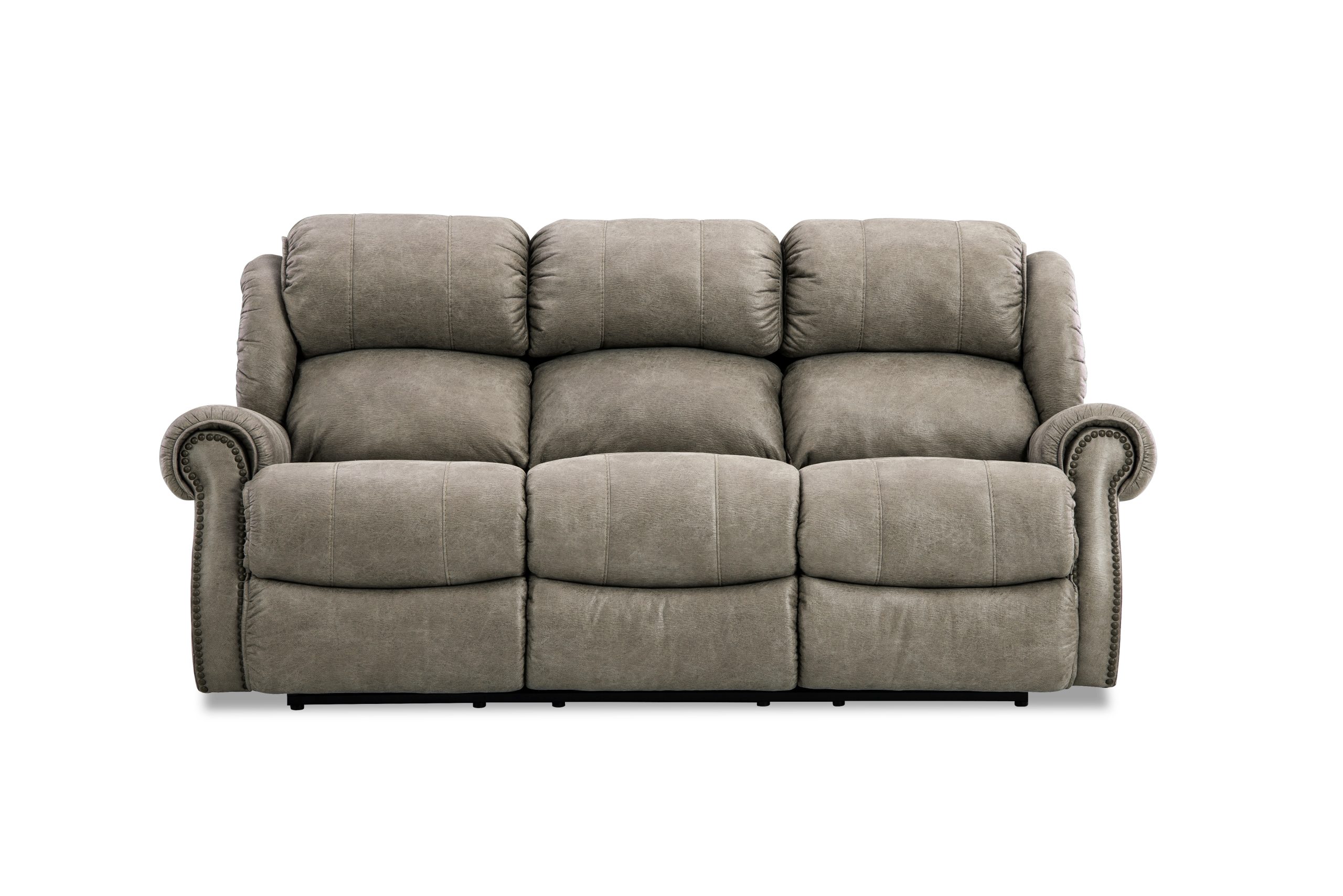 The Durango reclining furniture group combines plush, pad-over chaise seating with solid foam arm pads for lasting comfort and support. Zippered, loose headrests offer adjustable relaxation, while the 100% polyester faux leather upholstery delivers the look of real leather with easy care. Finished with classic nailhead trim for a refined touch.