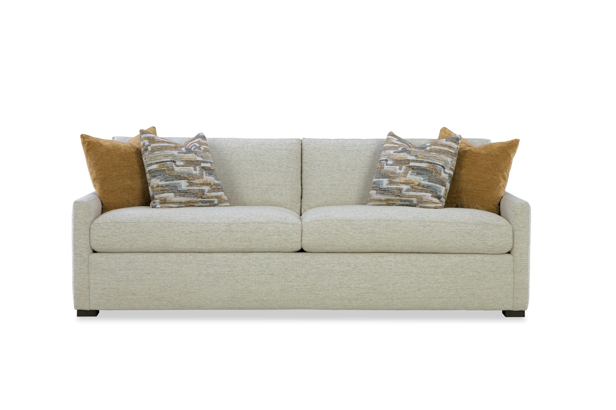 Introducing Fulton…a refined modern transitional track arm sofa. The clean, symmetrical frame offers a sophisticated look without sacrificing comfort. Featuring loose border backs, French seams, and our Super Soft seating package featuring luxuriously soft seats, backs, and toss pillows creating a relaxing sit experience. Available as an 84″ Sofa, 94″ Sofa, Bench Seat Sofa, Loveseat, Bench Loveseat, Chair and 1/2 and Matching Ottoman.