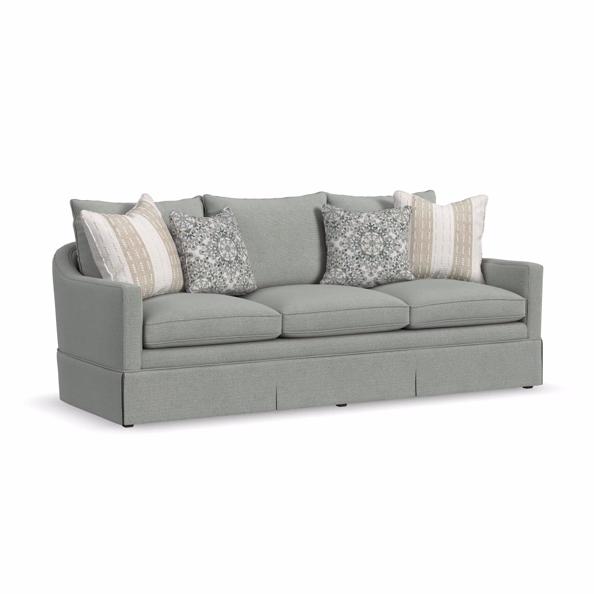 Revitalize your living room with the Eleanora sofa, where timeless design meets personal style. This piece celebrates your individuality, with the option of adding a tailored skirt for a classic touch and features a 6” square-tapered leg style, available in three beautiful finish options. Choose from a wide range of upholstery fabrics, including performance textiles designed to withstand everyday life. Thoughtfully crafted to fit seamlessly into your home, the Eleanora sofa features a gracefully curved back and refined welt detailing that bring elevated style to any space. Eleanora, the new standout of your living room.