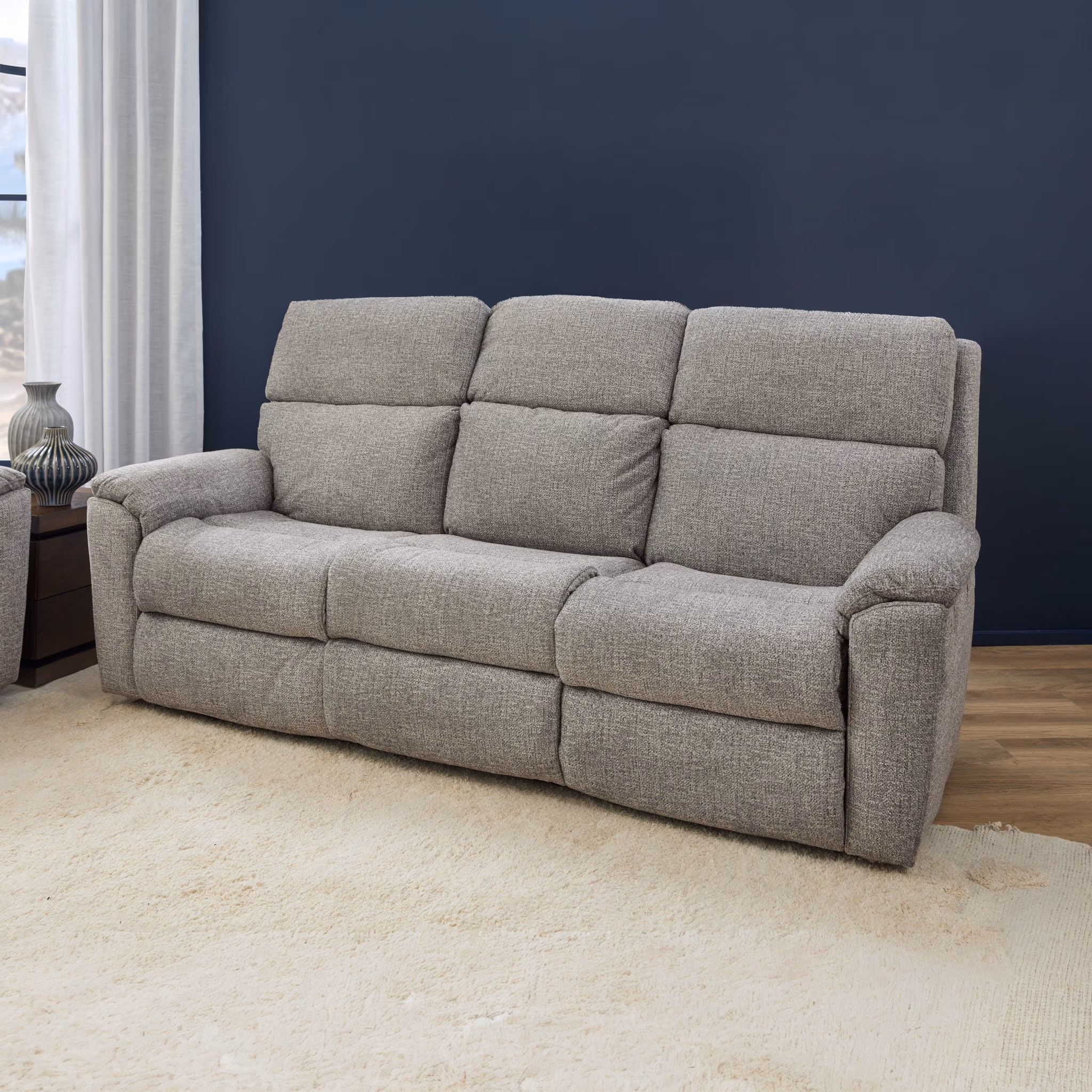 Sink into the effortless comfort of the Porter power reclining sofa. A blend of refined design and everyday luxury. Each piece invites you to unwind with independently adjustable recline, headrest, and lumbar support tailored to your perfect position. Thoughtfully contoured seats embrace you in all the right places, while the signature Flexsteel Blue Steel Spring™ system ensures unwavering support that stands the test of time. From quiet evenings to slow Sunday mornings, the Porter sofa turns every moment into something a little more indulgent.