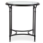 Featuring equestrian inspired lines, this hand forged steel side table is finished in aged black, with a clear tempered glass top.