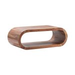 The Crestview Collection Infinity Cocktail Table has a simplistic, modern design that will bring a refreshing, new feel to your home. The table has a long, rounded design that gives a soft look. The design gives an open shelf at the bottom for display or