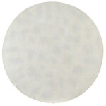 Round cocktail table featuring a carved geometric floral pattern in a serene monochrome. Crafted of oak veneers and resin for a distinctive living room centerpiece.