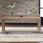 Elevate your space with the Sun Valley console bar table. Crafted of melamine and a rubberwood solid frame, this piece features a sandstone finish, three storage cubies beneath the top, one electrical outlet and two USB ports for easy access charging, and is anchored with square legs with a slat style end panel design. This simple yet elegant console bar table would make a gorgeous addition to your casual styled home, especially behind your sofa.